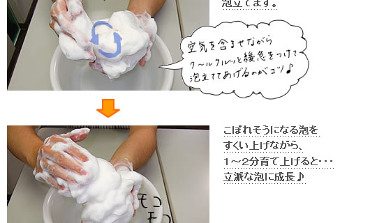渋の泡石けんの力を最大限に実感して頂くためのポイントは、やはり「泡」です。